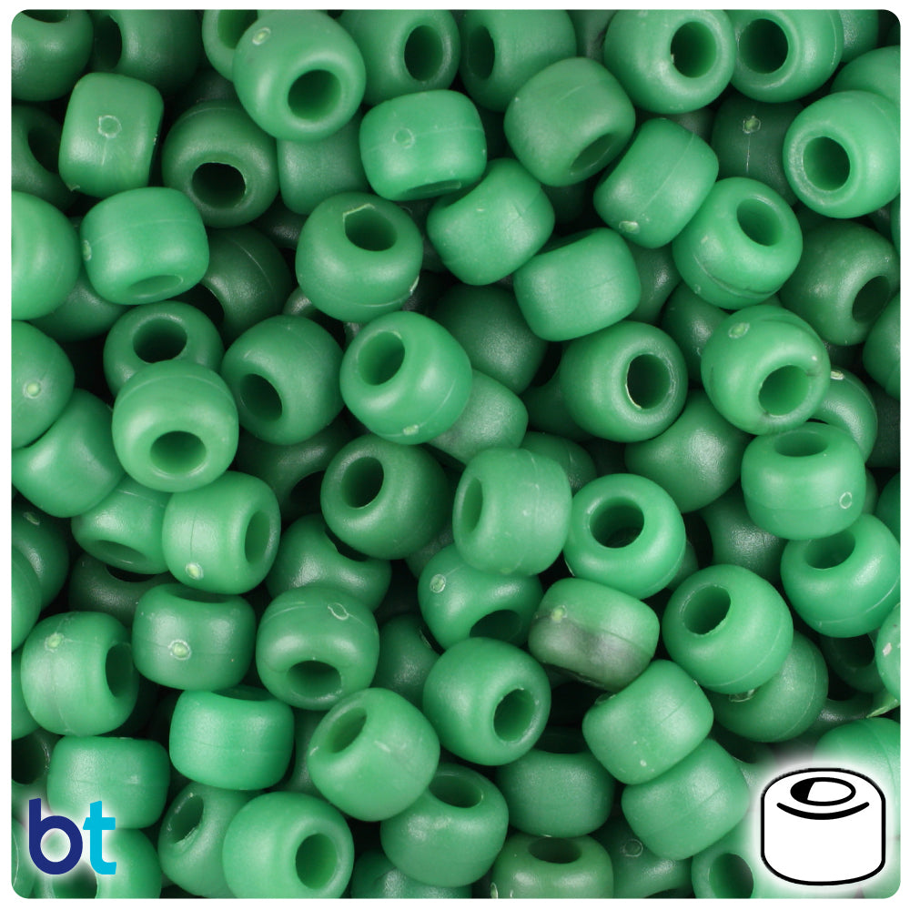Our malachite green, in a textured matte finish barrel shaped plastic pony beads, measure 6mm high by 9mm wide and have a 4mm hole which runs vertically down the middle of the bead. These plastic pony beads are made in the USA with high-quality, non-toxic polystyrene plastic and sold in packs of approx. 500 beads. Pony beads are ideal for a wide variety of projects like; necklaces, bracelets, kandi and dream catchers. The larger hole is easier to thread so makes them perfect for children's parties, activity camps and VBS.