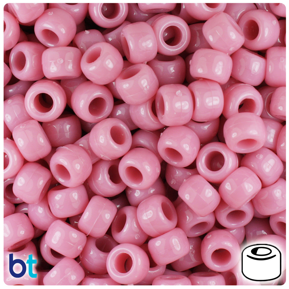 Our mauve pink, in a shiny opaque finish barrel shaped plastic pony beads, measure 6mm high by 9mm wide and have a 4mm hole which runs vertically down the middle of the bead. These plastic pony beads are made in the USA with high-quality, non-toxic polystyrene plastic and sold in packs of approx. 500 beads. Pony beads are ideal for a wide variety of projects like; necklaces, bracelets, kandi and dream catchers. The larger hole is easier to thread so makes them perfect for children's parties, activity camps and VBS.