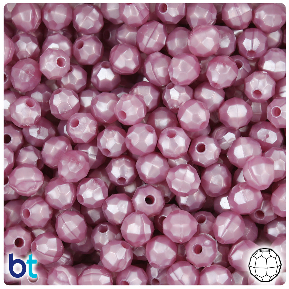 Our mauve pink, in a shimmering pearl finish faceted round plastic craft beads measure 8mm diameter and have a 1.5mm hole which runs through the center of the bead. These plastic craft beads are made in the USA with high-quality non-toxic plastic and come in packs of approx. 450 beads. Craft Beads are ideal for making necklaces, bracelets, key chain and other jewelry projects, as well as holiday decorations, home bedazzling and many other craft ideas. They are also perfect for children's craft projects and church or activity camps. Craft Beads come with a smaller hole, so they will fit on a range of threading material like elastic cord, stretchy cord and jewelry wire.