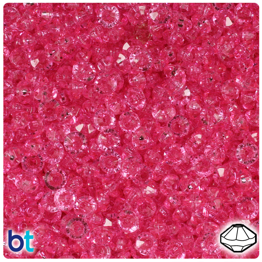 Medium Pink Transparent 6mm Faceted Rondelle Plastic Beads (1350pcs)