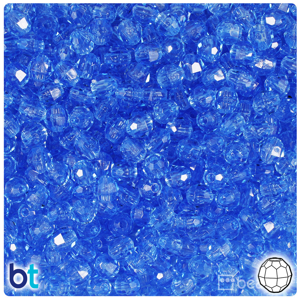 Our medium sapphire blue, in a see through transparent finish, faceted round plastic craft beads measure 6mm diameter and have a 1.3mm hole which runs through the center of the bead. These plastic craft beads are made in the USA with high-quality non-toxic plastic and come in packs of approx. 600 beads. Craft Beads are ideal for making necklaces, bracelets, key chain and other jewelry projects, as well as holiday decorations, home bedazzling and many other craft ideas. They are also perfect for children's craft projects and church or activity camps. Craft Beads come with a smaller hole, so they will fit on a range of threading material like elastic cord, stretchy cord and jewelry wire.