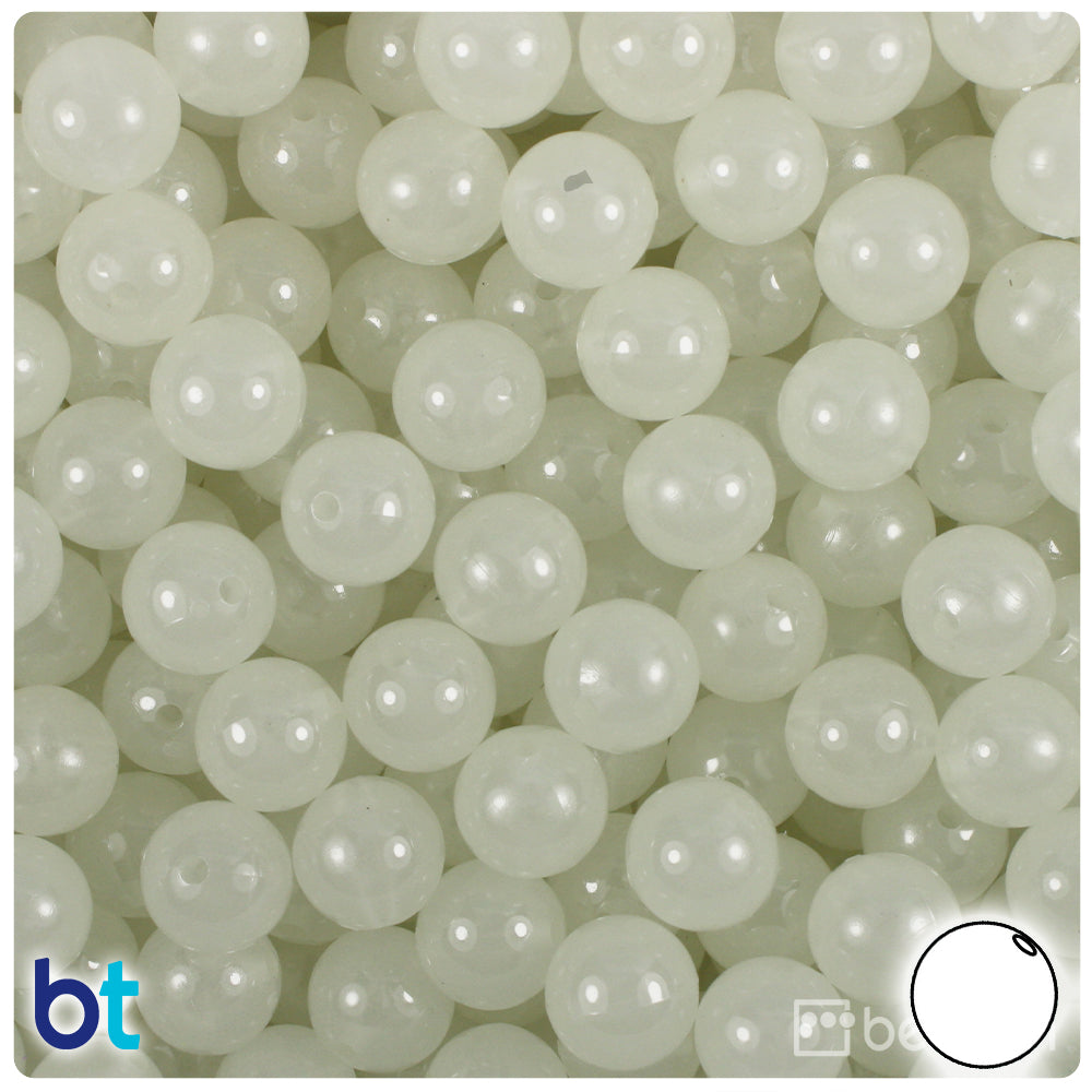 Our clear night, in a glow in the dark finish, round plastic craft beads measure 10mm diameter and have a 1mm hole which runs through the center of the bead. These plastic craft beads are made in the USA with high-quality plastic and come in packs of approx. 150 beads. Craft Beads are ideal for making necklaces, bracelets, key chain and other jewelry projects, as well as holiday decorations, home bedazzling and many other craft ideas. They are also perfect for children's craft projects and church or activity camps. Craft Beads come with a small 1-2mm hole, so they will fit on a range of threading material like elastic cord, stretchy cord and jewelry wire.