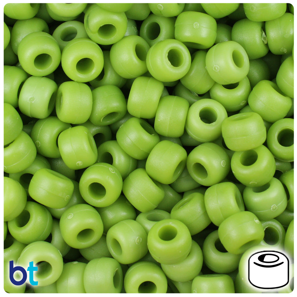 Our olive green, in a textured matte finish barrel shaped plastic pony beads, measure 6mm high by 9mm wide and have a 4mm hole which runs vertically down the middle of the bead. These plastic pony beads are made in the USA with high-quality, non-toxic polystyrene plastic and sold in packs of approx. 500 beads. Pony beads are ideal for a wide variety of projects like; necklaces, bracelets, kandi and dream catchers. The larger hole is easier to thread so makes them perfect for children's parties, activity camps and VBS.