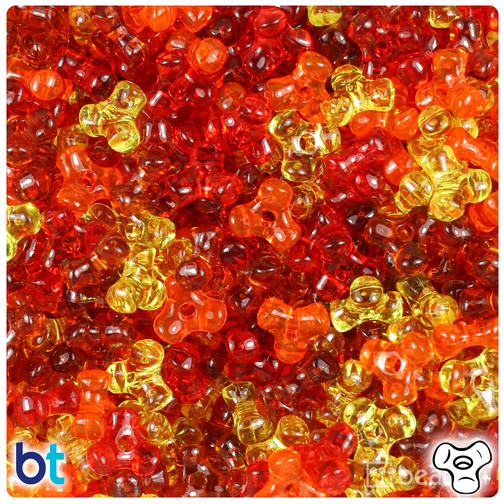 Our orange and gold mix, in a see through transparent finish, tribead plastic craft beads measure 11mm across and have a 1.5mm hole in the center of the bead. They are also known as propeller bead, triangle beads, tri beads or stacking beads. These plastic craft beads are made in the USA with high-quality plastic and come in packs of approx. 500 beads. Craft Beads are ideal for making necklaces, bracelets, keychains and other jewelry projects, as well as holiday decorations, home bedazzling and many other craft ideas. Craft Beads come with a smaller hole, so they will fit on a range of threading material like elastic cord, stretchy cord and jewelry wire.