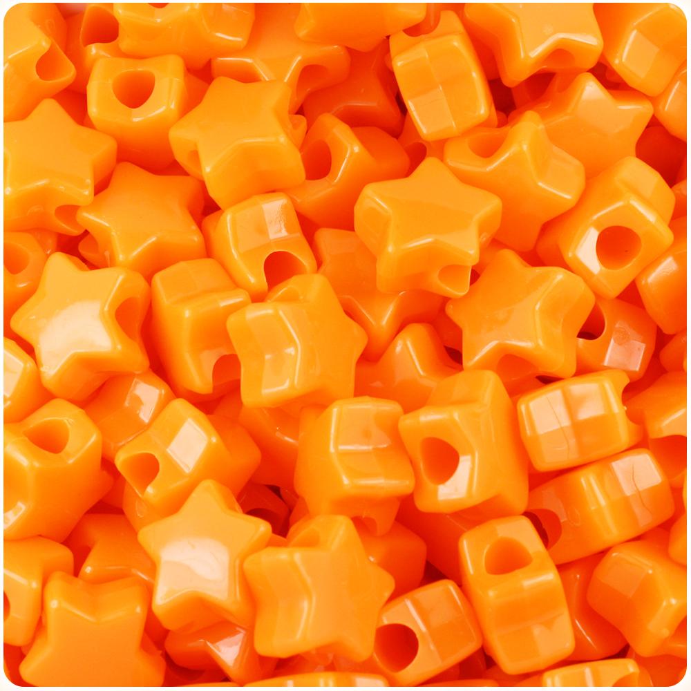 These orange opaque star shaped pony beads measure 13mm wide by 13mm high and have a 4mm hole which runs vertically down the middle of the beads. Our plastic pony beads are made in the USA with high-quality plastic and come in packs of approx. 50 beads.