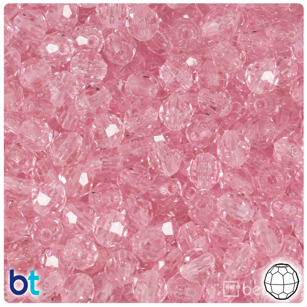 Our pale pink, in a see through transparent finish faceted round plastic craft beads measure 8mm diameter and have a 1.5mm hole which runs through the center of the bead. These plastic craft beads are made in the USA with high-quality non-toxic plastic and come in packs of approx. 450 beads. Craft Beads are ideal for making necklaces, bracelets, key chain and other jewelry projects, as well as holiday decorations, home bedazzling and many other craft ideas. They are also perfect for children's craft projects and church or activity camps. Craft Beads come with a smaller hole, so they will fit on a range of threading material like elastic cord, stretchy cord and jewelry wire.