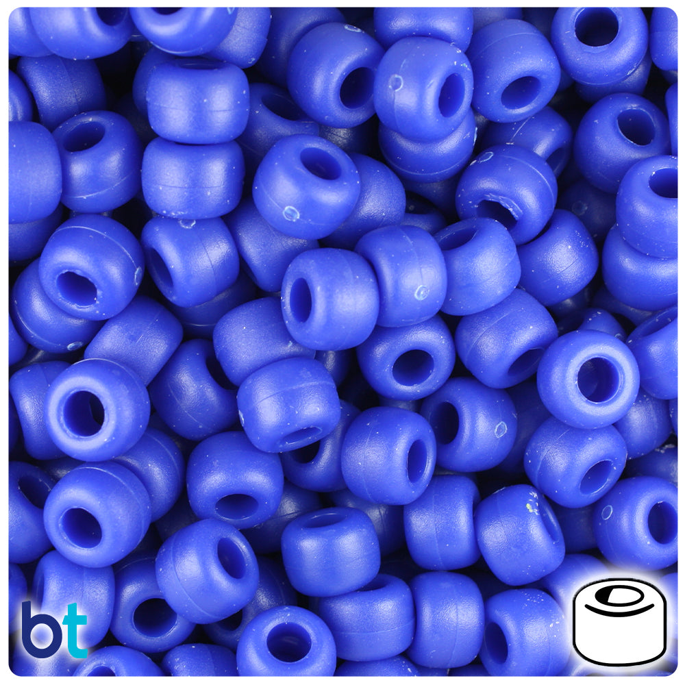 Our royal blue, in a textured matte finish barrel shaped plastic pony beads, measure 6mm high by 9mm wide and have a 4mm hole which runs vertically down the middle of the bead. These plastic pony beads are made in the USA with high-quality, non-toxic polystyrene plastic and sold in packs of approx. 500 beads. Pony beads are ideal for a wide variety of projects like; necklaces, bracelets, kandi and dream catchers. The larger hole is easier to thread so makes them perfect for children's parties, activity camps and VBS.
