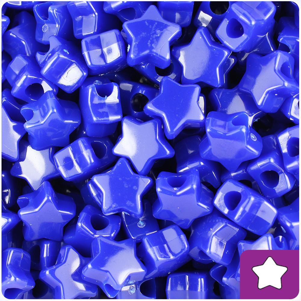 These royal blue opaque star shaped pony beads measure 13mm wide by 13mm high and have a 4mm hole which runs vertically down the middle of the beads. Our plastic pony beads are made in the USA with high-quality plastic and come in packs of approx. 50 beads.