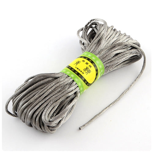 Silver satin cord 2mm thick and 20m long (approx, 22 yards) This nylon cord is also known as Chinese Knot, Rattail & Polyester cord. Imported from China and supplied in a zip lock bag.