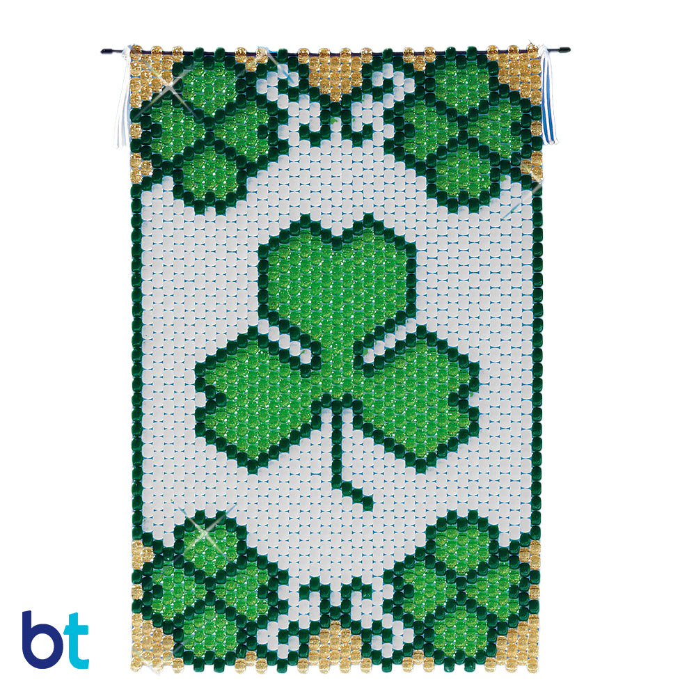 St Patrick's beaded banner kit from The Beadery These banners use our standard 9mm barrel pony beads in a variety of colors and finishes to complete the design. Instructions in English, French, German, Spanish, Portuguese, and Chinese.