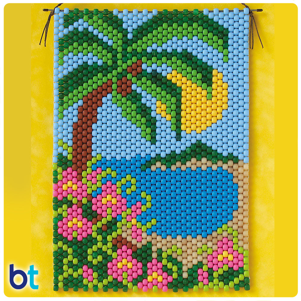 Tropical Delight beaded banner kit from The Beadery These banners use our standard 9mm barrel pony beads in a variety of colors and finishes to complete the design. Instructions in English, French, German, Spanish, Portuguese, and Chinese.