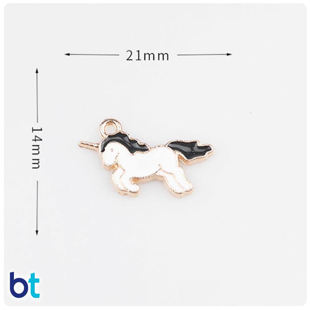 Unicorn design metal charms for jewelry designs and general crafting activities. Imported from China and supplied in a zip lock bag.