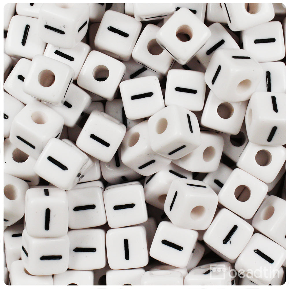 Available in individual letters or a mixed pack, these white opaque 10mm cube alphabet plastic beads have a 3mm hole which runs horizontally to the letter which is imprinted on 4 sides of the beads in black. Imported from China and sold in packs of approx. 20 beads.