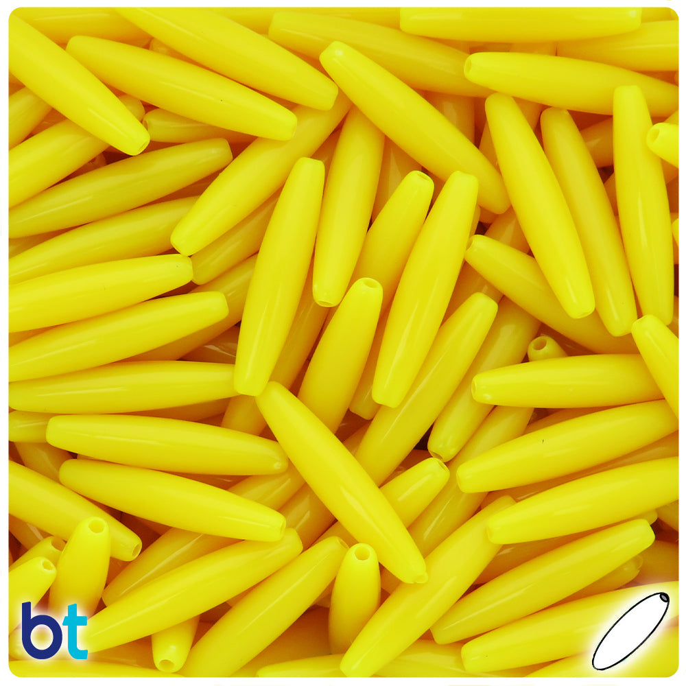 Our orange shiny opaque finish spaghetti shaped plastic beads measure 27.9mm long (hole to hole) by 5.9mm wide at the widest point and have a 1mm hole running horizontally through the middle of the bead. These plastic craft beads are imported from China and sold in packs of approx. 100 beads. Our craft beads are very versatile and are ideal for making necklaces, bracelets, key chain and other jewelry projects, as well as holiday decorations, home bedazzling and many other craft ideas.