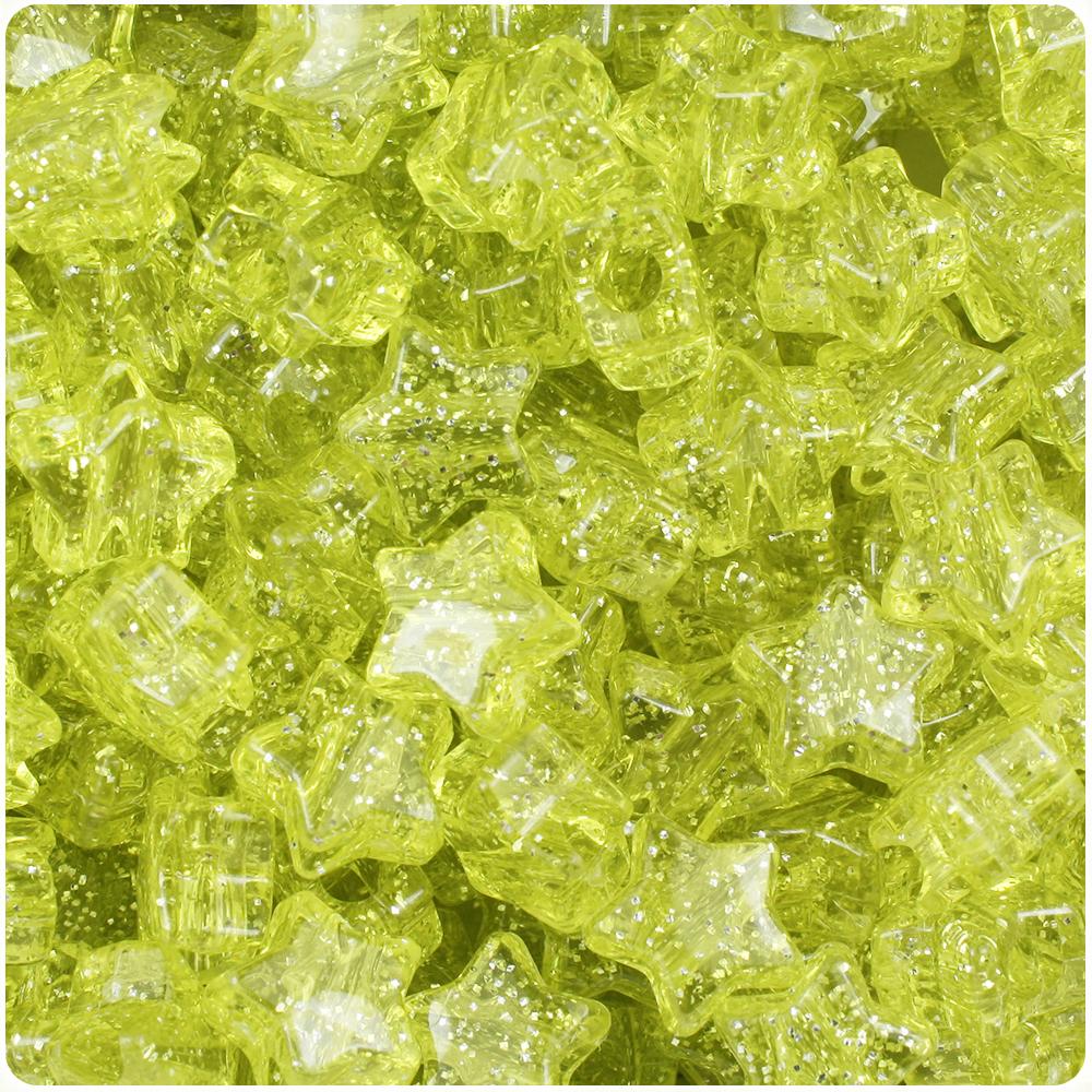 These yellow sparkle star shaped pony beads measure 13mm wide by 13mm high and have a 4mm hole which runs vertically down the middle of the beads. Our plastic pony beads are made in the USA with high-quality plastic and come in packs of approx. 50 beads.