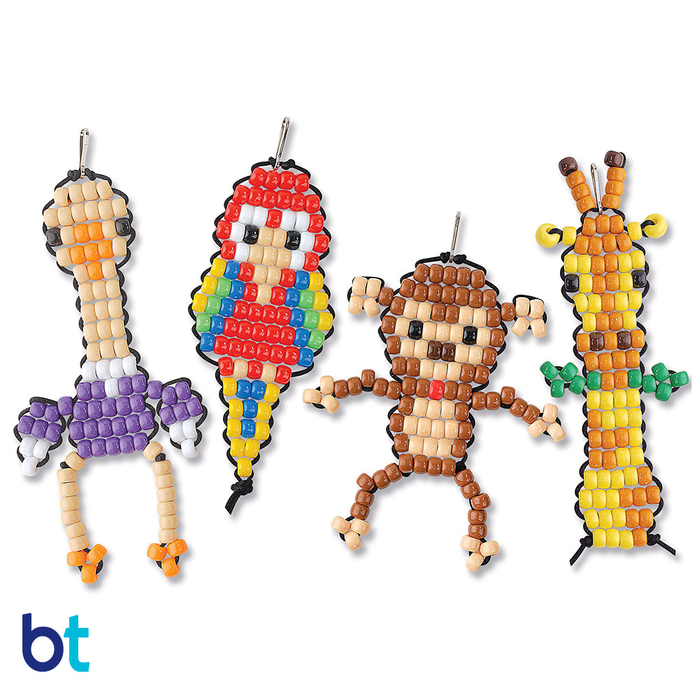Zoo Pals Backpack Buddy Pony Bead Kit from The Beadery, special color collection for creating unique craft and jewelry. Ideal for kids parties, camp crafts and more. The kits makes 4 different designs as shown.